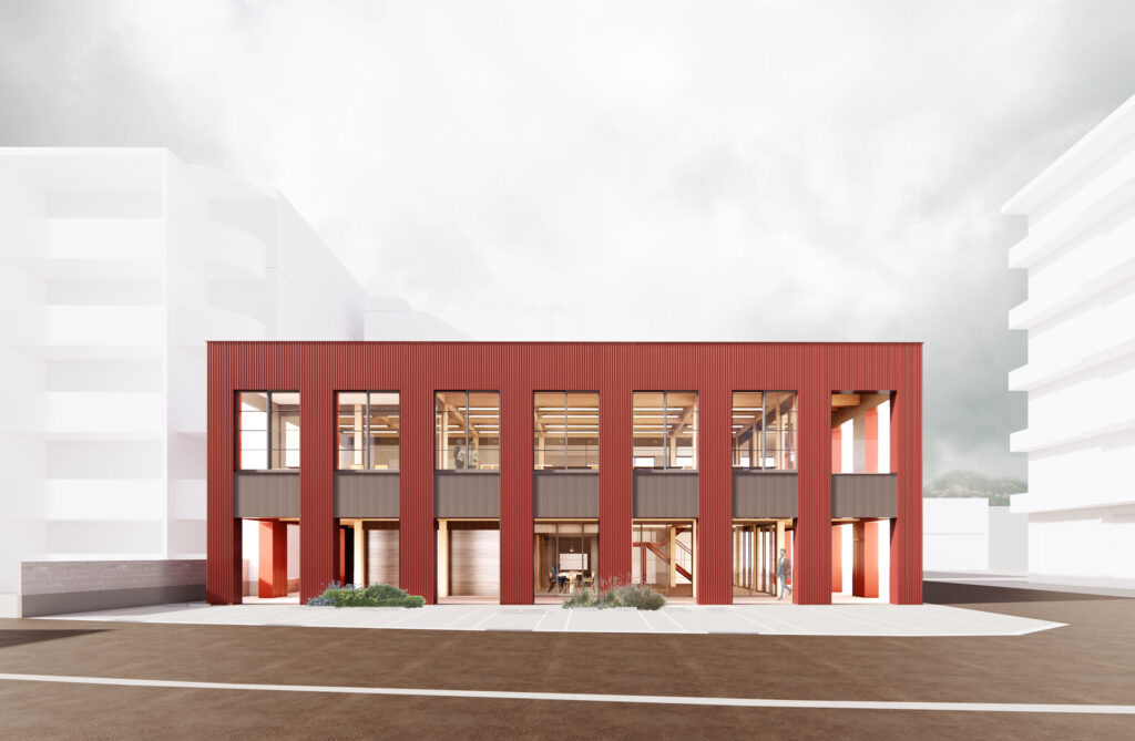 東雲のオフィス 2025.12.12 広島で看板業からスタートし、いまでは内装施工・設計まで手掛ける企業の新社屋プロジェクトである。 構造躯体には木造ラーメン構造を採用し、3100mmグリッドによるレイアウトと自由度の高い平面計画が、今後の組織の成長に対応す… Read more